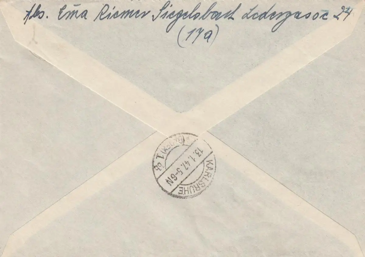Einschreiben Siegelsbach/Sennsheim 1947 nach Karlsruhe