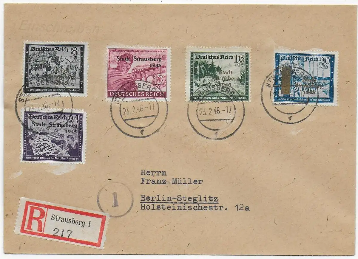 Einschreiben Straussberg mit MiNr. 15 Plattenfehler II, 1946 nach Berlin