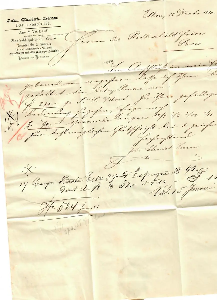 Einschreiben Ulm 1880 - Stadtpost Büro Stempel nach Paris, Inhalt