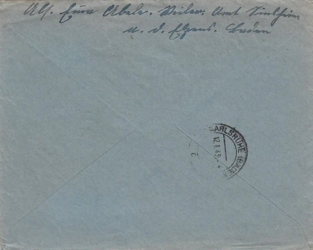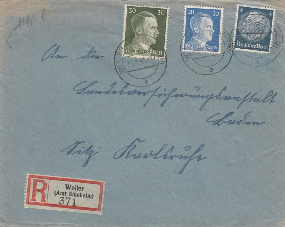 Einschreiben Weiler/Amt Sinsheim nach Karlsruhe 1943