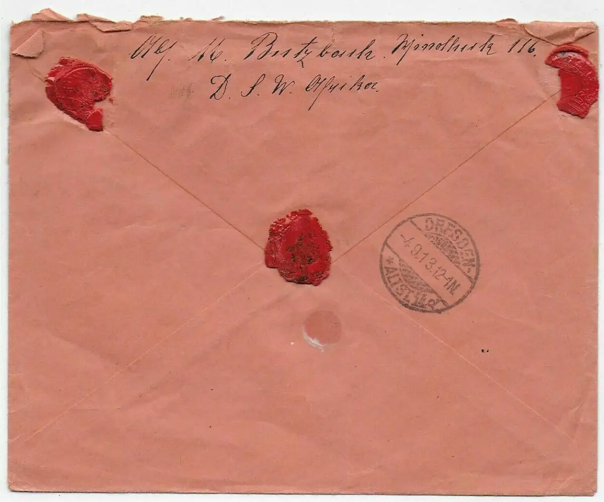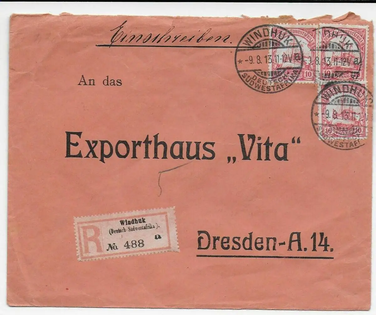 Einschreiben Windhuk 1913 nach Dresden