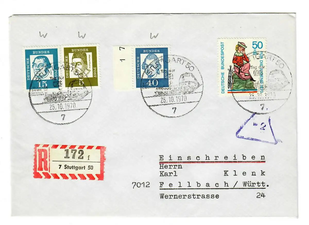 Einschreiben aus Stuttgart nach Fellbach 1970