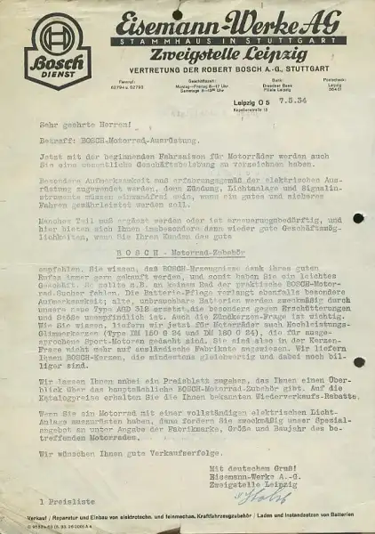 Eisemann Werke AG Zweigstelle Leipzig Schreiben 1934