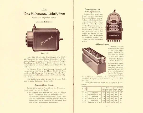 Eisemann`s Elektrische Beleuchtung mit Selbst-Anlasser 1914