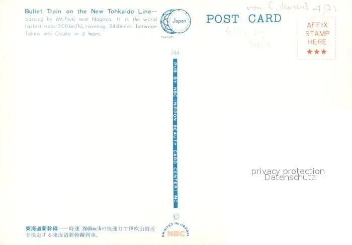 Eisenbahn Bullet Train New Tokaido Line Mount Ibuki Nagoya Eisenbahn postalisch nicht gelaufen nach 1965 Erhaltung siehe scans [PaolaD17] PaolPID1