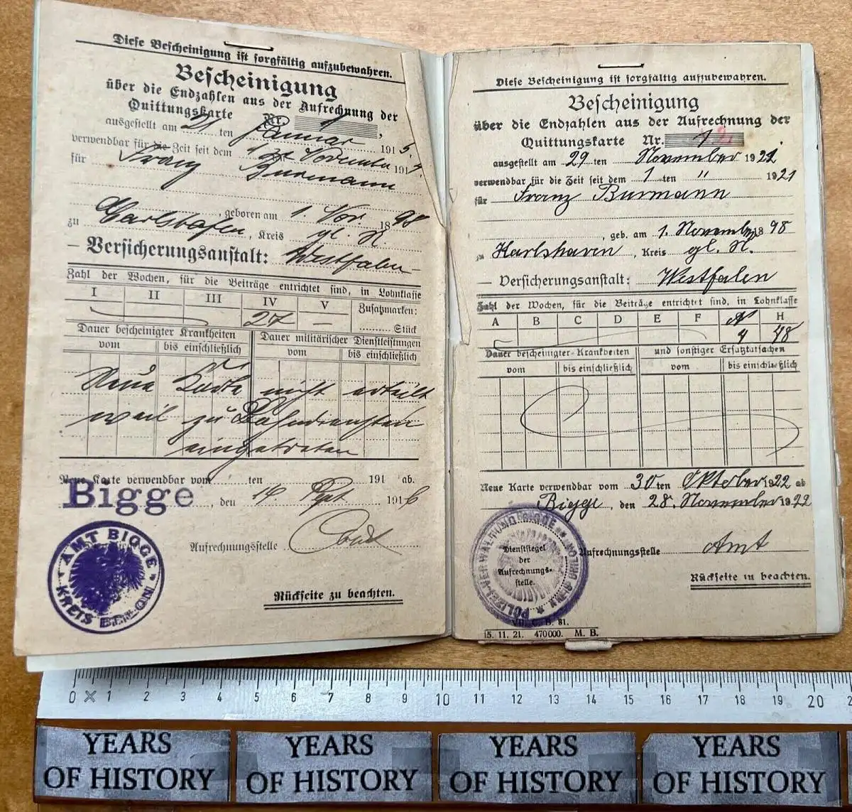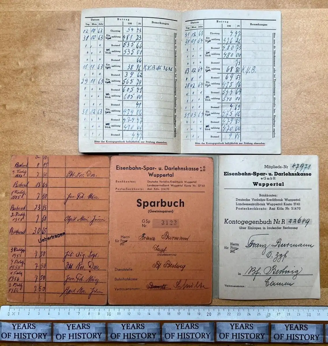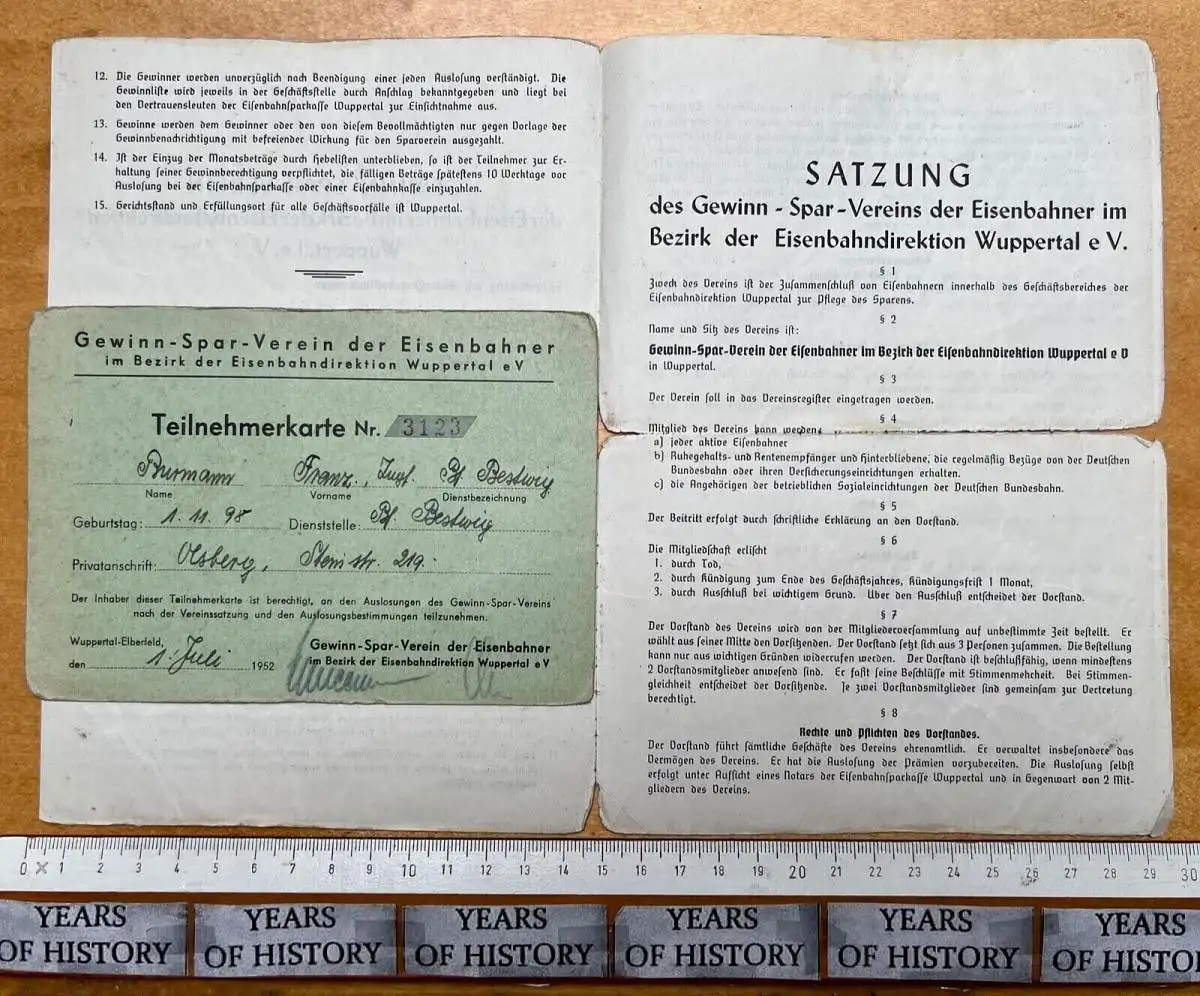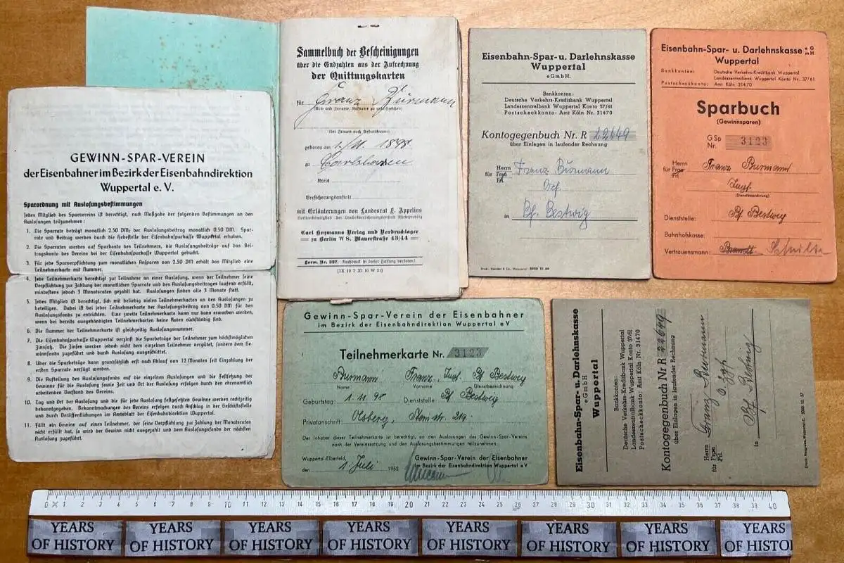 Eisenbahn Dokumente ab 1916-50er Jahre Bescheinigungen Wuppertal - Eisenbahn Spar u. Darlehenskasse - Gewinn Spar Verein - Sammelbuch der Bescheinigungen über die Endzahlen aus der Aufrechnung der Quittungskarten