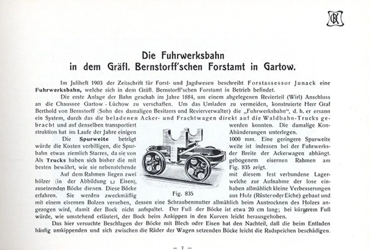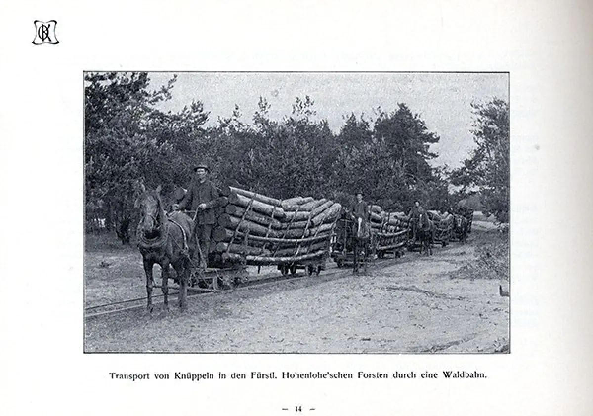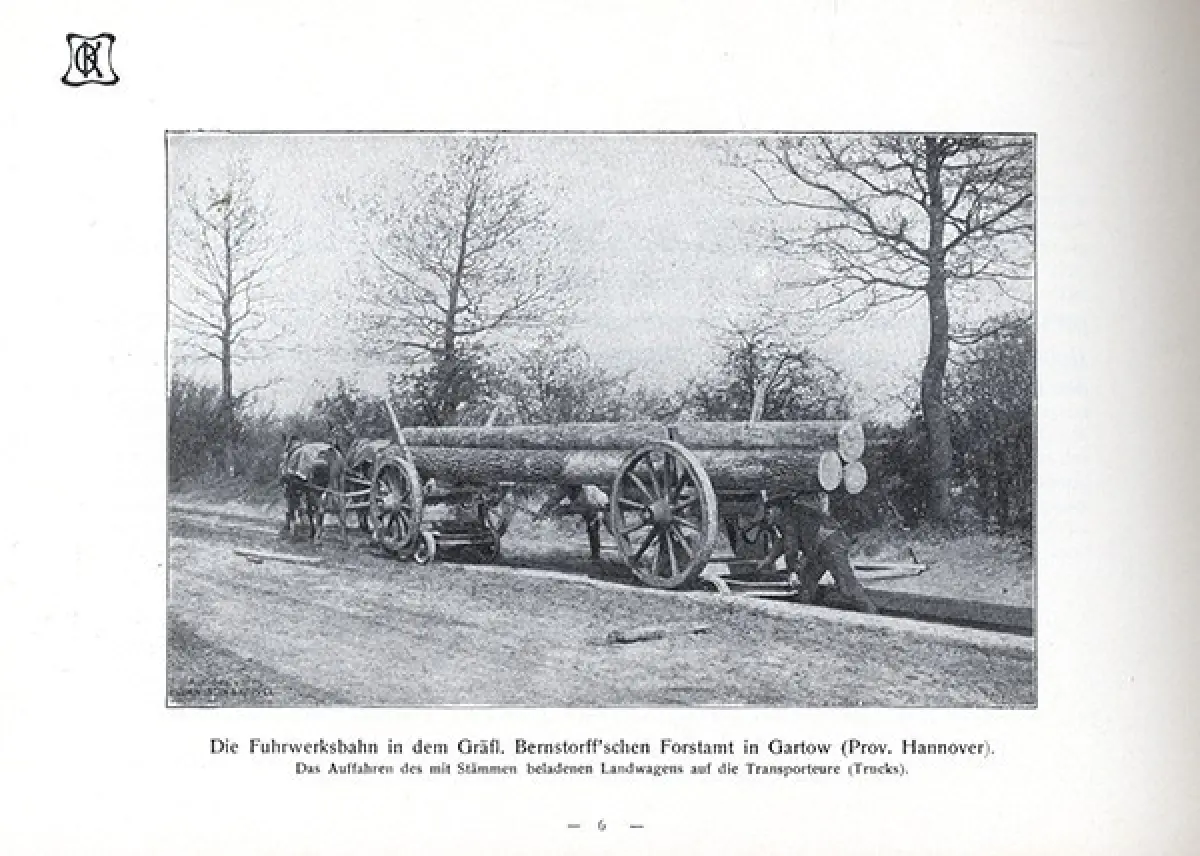 mit 20 Seiten mit fotografischen und druckgrafischen Abbildungen die Bedeutung der Waldbahnen für die Forstwirtschaft mit einem Vorwort Einsatzmöglichkeiten von Feld und Waldbahnen zum Beispiel im Bernstorffischen Forstamt Gartow (Kreis Lychow Dannenberg) Betrieb und Streckenführung
