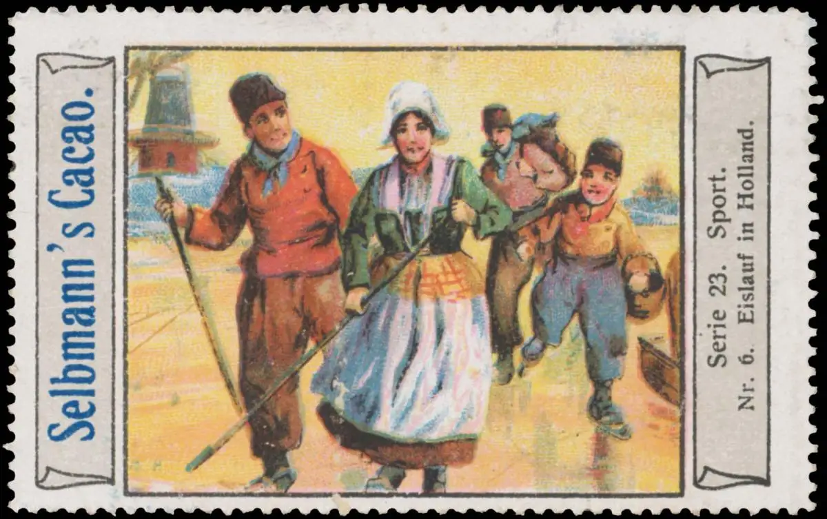 Selbmanns Cacao, Serie 23, Sport Nr. 6, Schlittschuh, Größe/Zustand: 5x7 , guter Zustand, Original alte Reklamemarke die seinerzeit für die Werbung benutzt wurde