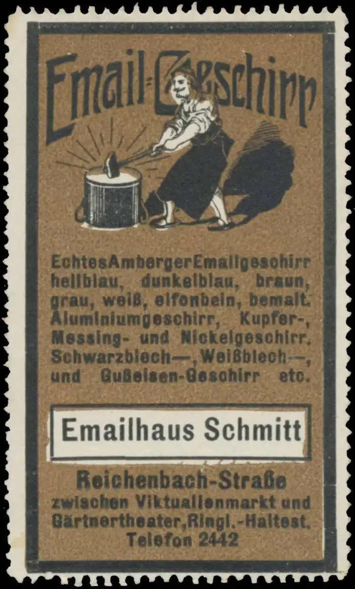 echtes Amberger Emailgeschirr, Größe/Zustand: 7x4 , guter Zustand, Original alte Reklamemarke die seinerzeit für die Werbung benutzt wurde