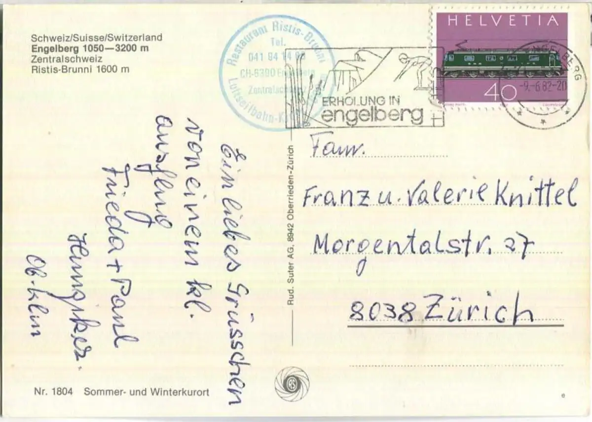 Engelberg - Ristis Brunni - Luftseilbahn - Verlag Rud. Suter Oberrieden (E90635) gel. 1982