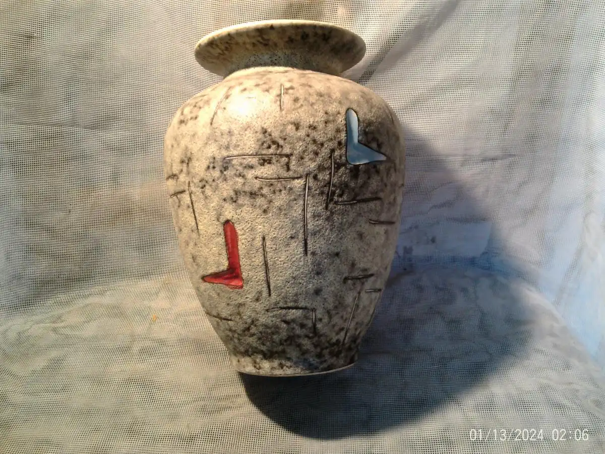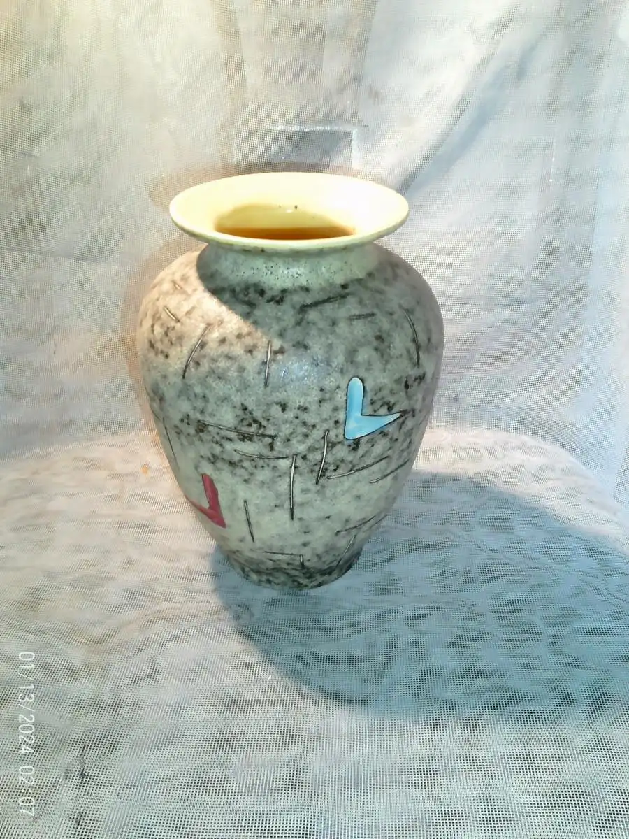 Entwurf von Heinz Siery Foreign Vase 50er Jahre Scheurich Emaille Malerei Dekor 528-20