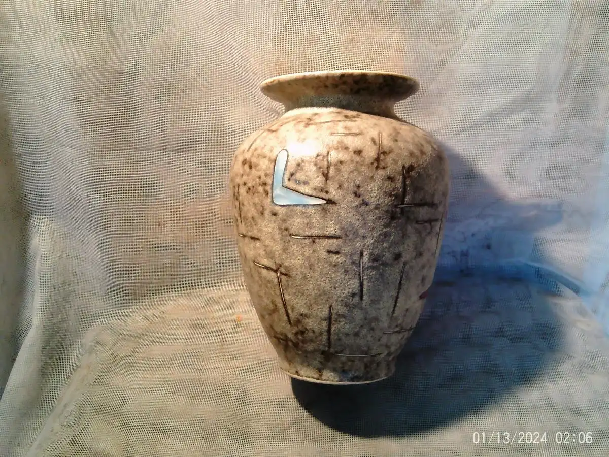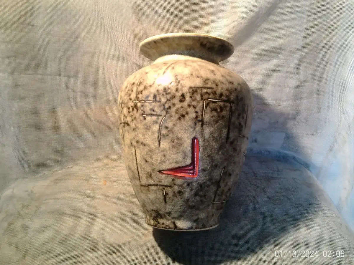 Entwurf : Heinz Siery Foreign Vase 50er Jahre Scheurich Emaille Malerei Dekor 528-20 H: 20 cm aus der Vitrine !