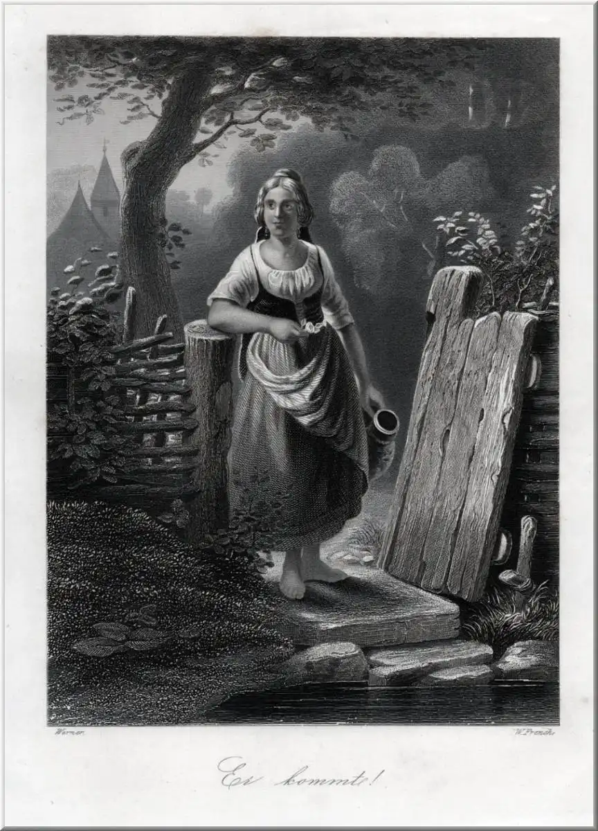 Er kommt. Originaler Stahlstich, gestochen von French um 1850