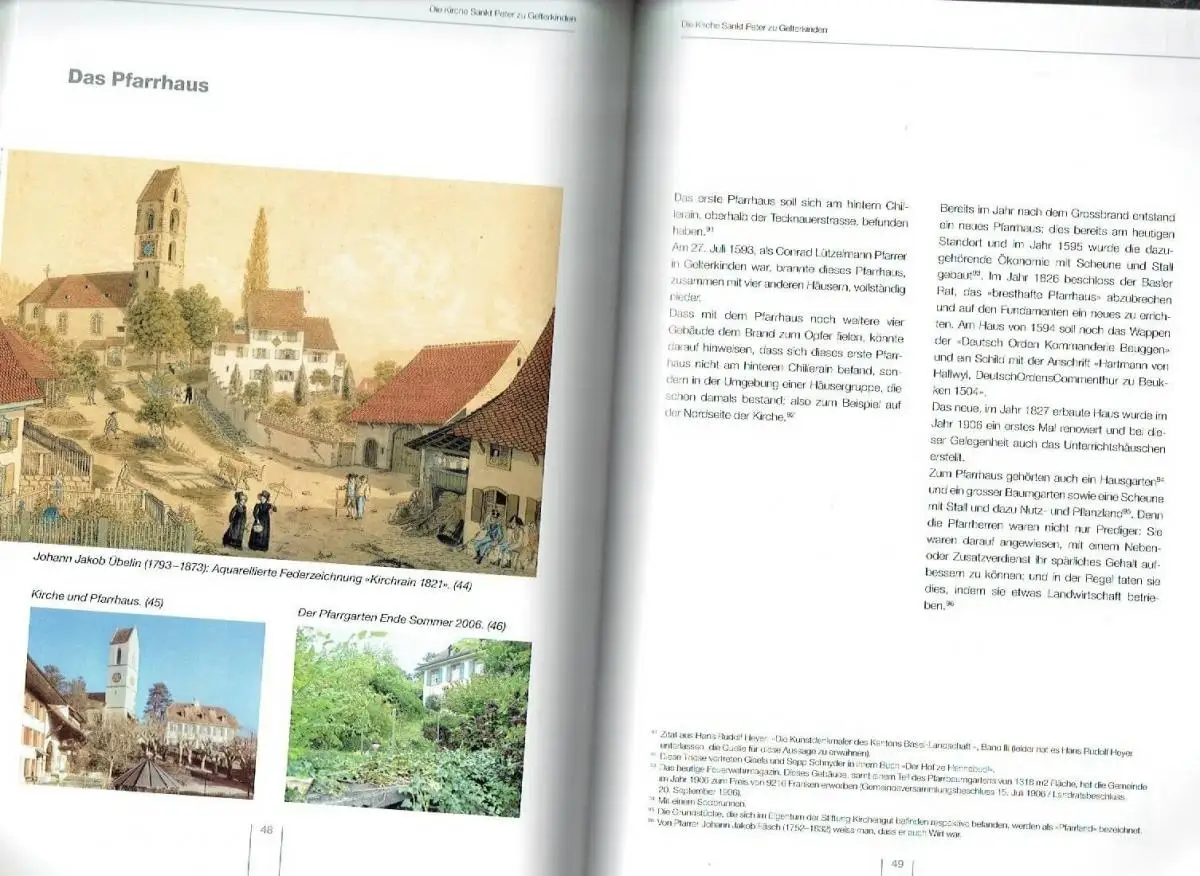 sehr guter Zustand, geringe Gebrauchs- und Alterungsspuren, Auflage: 350 Exemplare - Die Kirche als Kulturgut von regionaler Bedeutung - An einem alten Weg vom Rheintal ins Aaretal - Der Chillerain - Zur Kirche gehörte ein Hof - Die Baugeschichte der Kirche - Die Renovierung und Restaurierung in den Jahren 1969/1970 - Die Stiftung Kirchengut Baselland - Die ummauerte Kirche als Friedensbereich - Der Kirchturm - Die Steinmetzzeichen - Die Kirchenglocken - Die Turmuhren (s Chillezytt) - Die Sonnenuhr - Der Mittagsweiser - Die Kanzel, der Pfarrstuhl, die Pflegerstühle und die Orgel - Das Epitaph Fleitter - Das Epitaph Genath - Die Wandmalereien - Die Verzierungen und Ausschmückungen - Der Kirch- respektive Friedhof als letzte Ruhestätte - Von Gräbern und Grabsteinen - Die Reformation - Das Pfarrhaus - Die Prediger und Pfarrherren - Eduard Strübin: Der Kirchrain Gelterkinden im Jahr 1821 - Anhang I: Dies und das rund um die Kirche und ihre Diener - Anhang II: Bildnachweis - Anhang III: Personenverzeichnis - Anhang IV: Chronologie der im Text zitierten Daten - Anhang V: Literaturverzeichnis - Anhang VI: «Und plötzlich nur noch Objekte für Museen und Archive», kartoniert, ca. 20,5 x 29,5, 79 Seiten mit zahlreichen Bildern