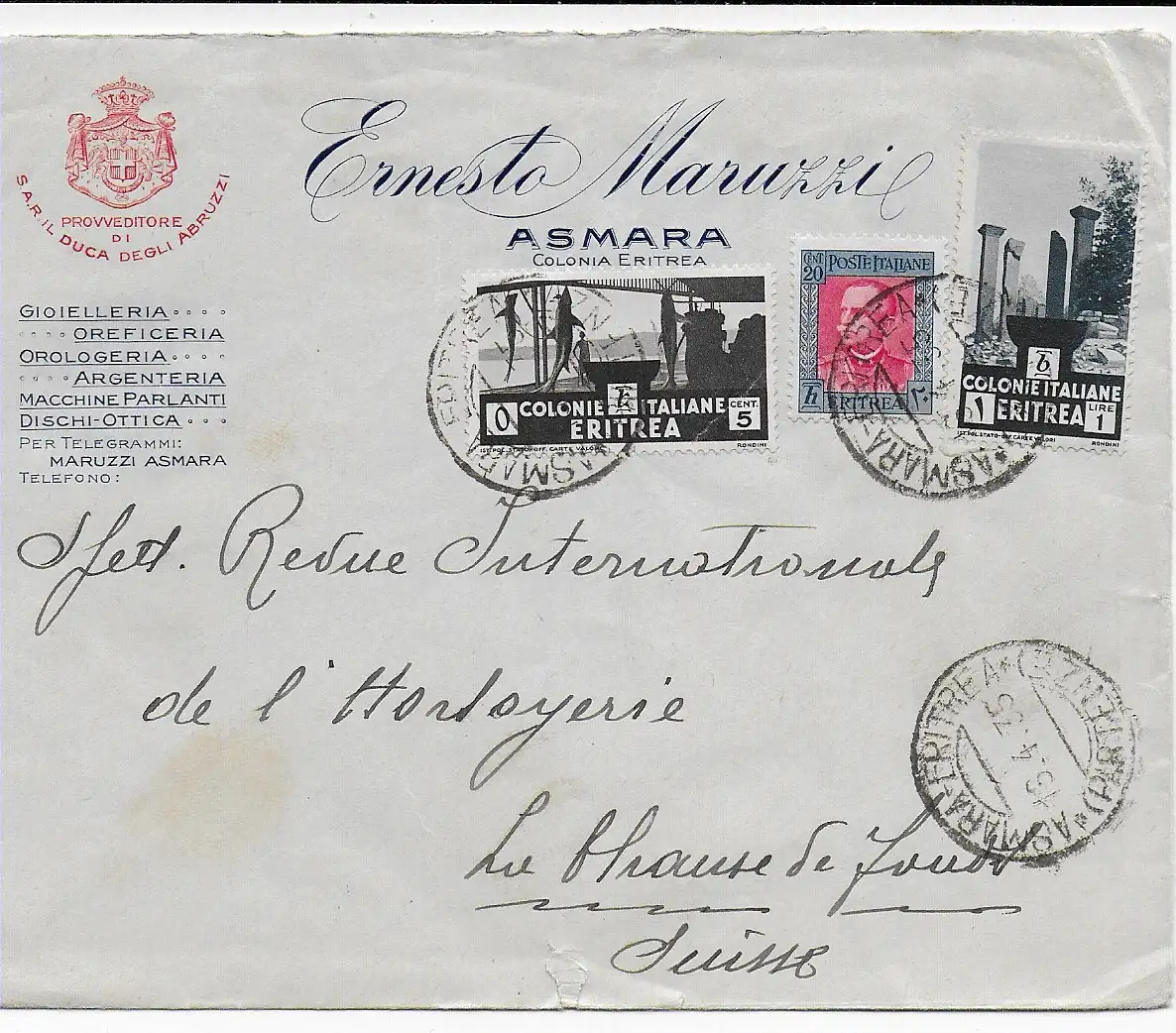 Eritrea 1935: Brief von Asmarna in die Schweiz
