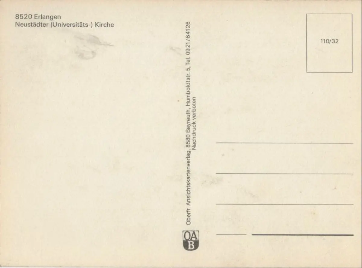 Postleitzahl:91054 (neu) / W 8520 (alt)