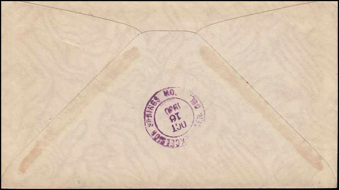 mit Ankuftstempel EXCELSIOR SPRINGS 16.10.20, mit Bordstempel Fleugzeug und Erdölförderung / Bohrtürme