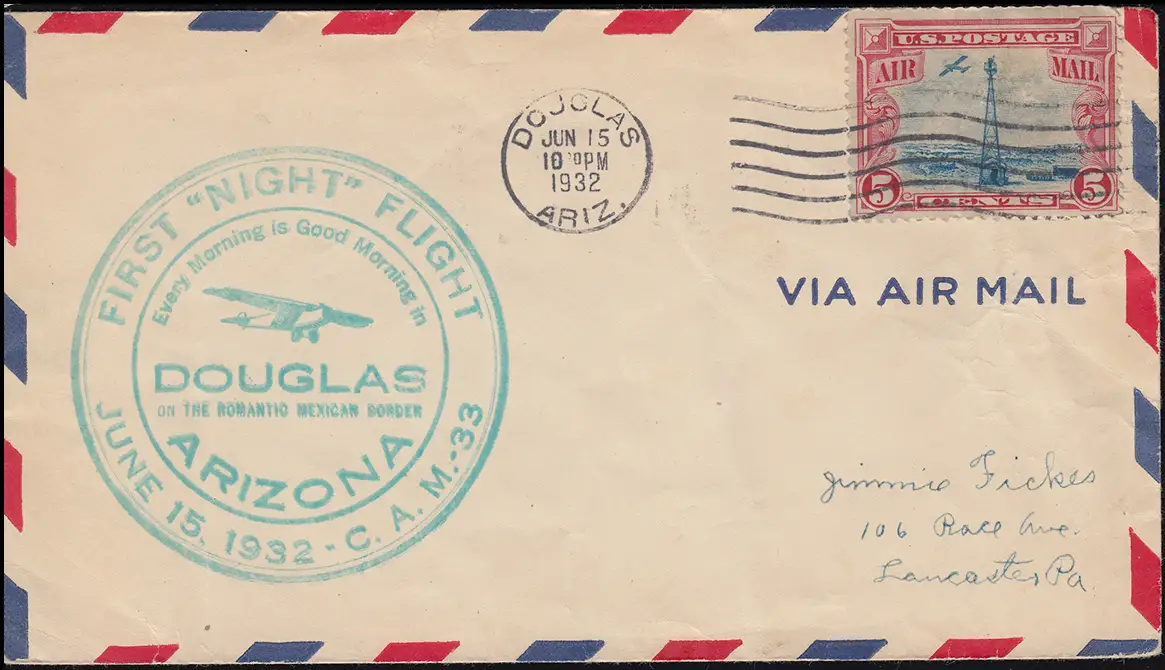 Erstflug FIRST NIGHT FLIGHT C.A.M. 33 ab Douglas / Arizona 15.6.1932