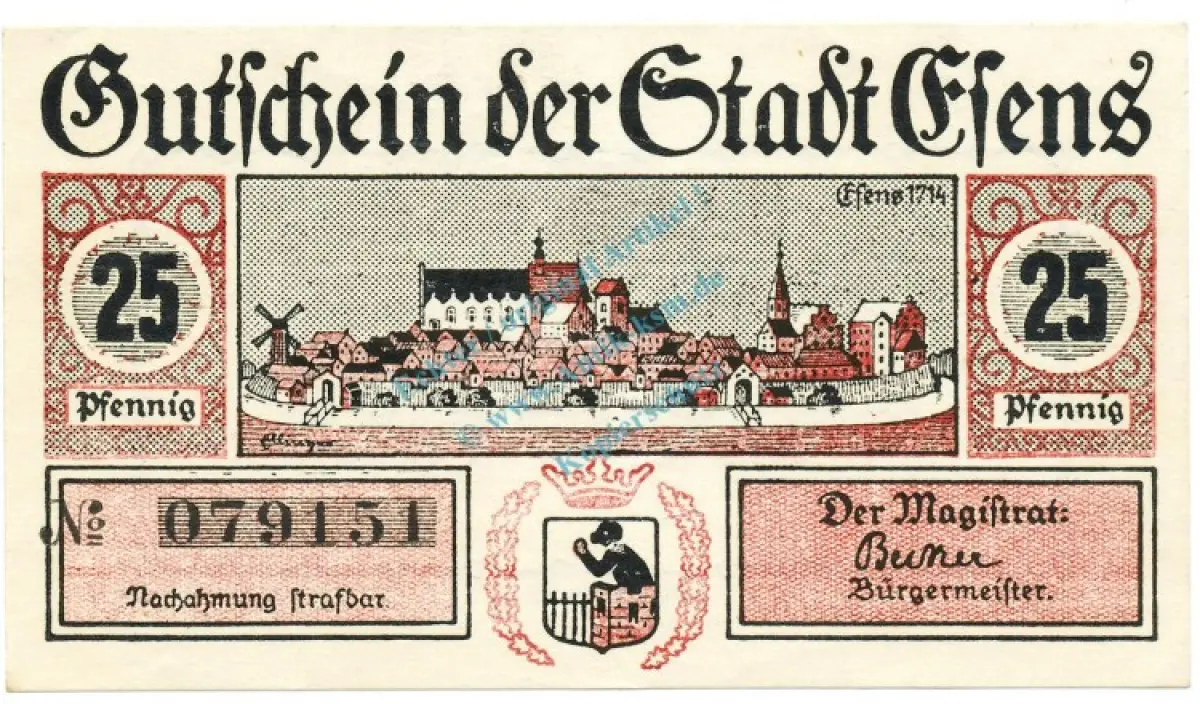 Esens , Notgeld 25 Pfennig Schein unc-kfr. Ti.1795.05.05 , Niedersachsen o.D. Verkehrsausgabe