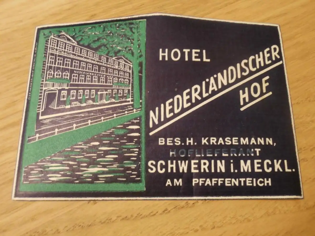 Etikett - Niederländischer Hof in Schwerin , Hoflieferant , Hotel , Brauerei , H. Krasemann , Mecklenburg !!
