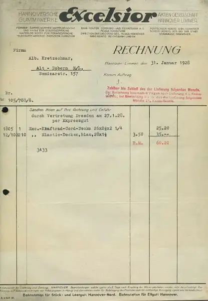 Excelsior, Hannover Rechnung 1928
