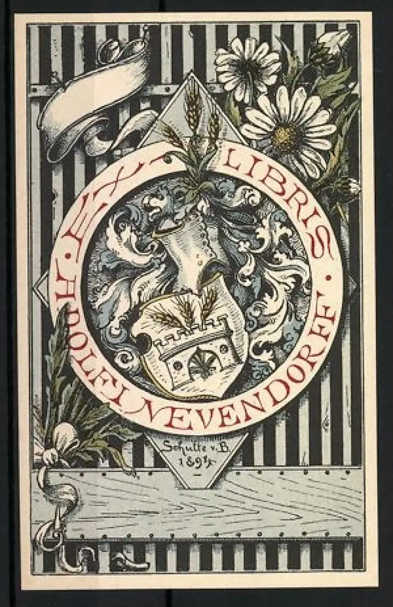 Exlibris Adolf Nevendorf, Wappen mit Helm