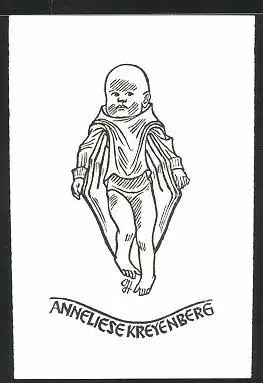 Exlibris Anneliese Kreyenberg, Baby mit Umhang
