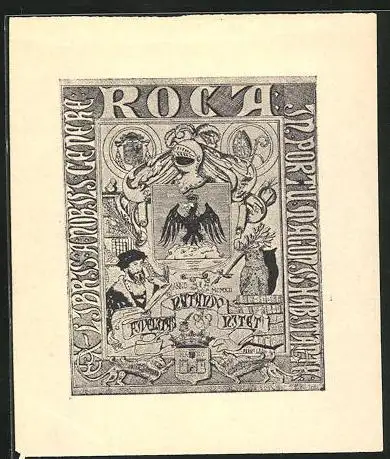 Exlibris Antonio Roca, Mahon, Ritterhelm mit Eule