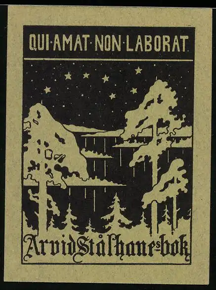 Exlibris Arvid Stälhane, Winterlandschaft mit Sternformation