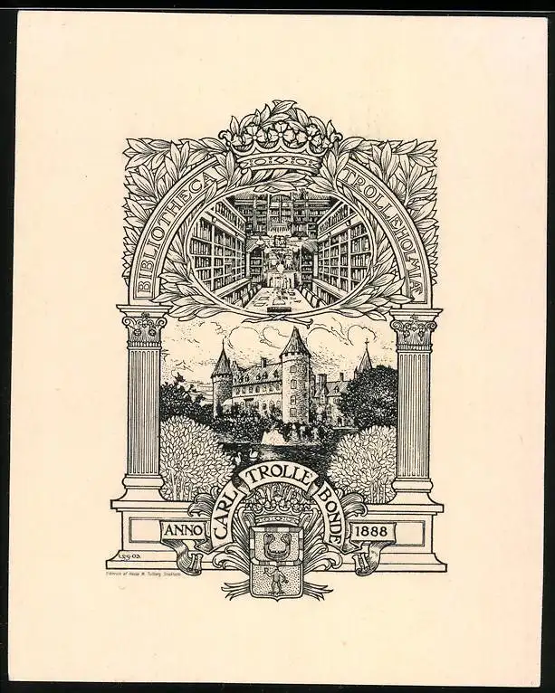 Exlibris Carl Trolle Bonde, Schloss Trolleholm, Aussenansicht & Bibliothek