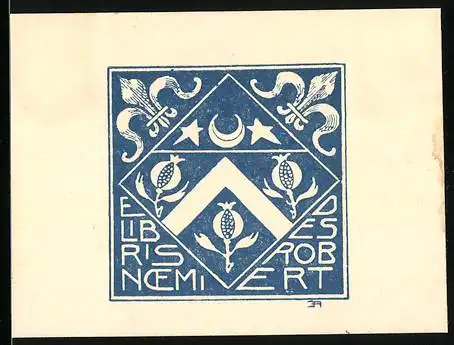 Exlibris Des Robert, Wappen mit Halbmond und Lilien