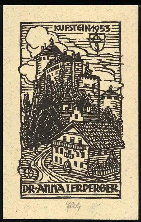 Exlibris Dr. Anna Lerperger, Kufstein, Burg um 1953