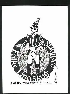 Exlibris Folke Lindskog, Eleganter Soldat in Uniform mit Degen, Östgöta Kavallerieregiment 1788