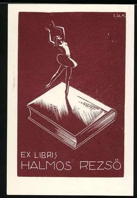 Exlibris Halmos Rezsö, Ballerina tanzt auf einem Buch-Einband