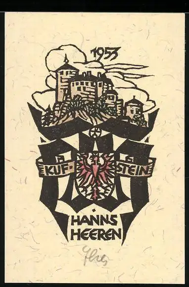Exlibris Hanns Heeren, Kufstein, Stadtansicht und Wappen