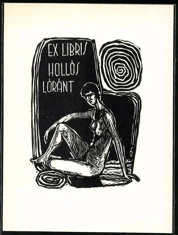 Exlibris Hollos Lorant, Frauenakt auf dem Boden sitzend