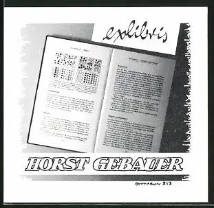 Exlibris Horst Gebauer, offenes Lehrbuch mit Geometrischen Figuren