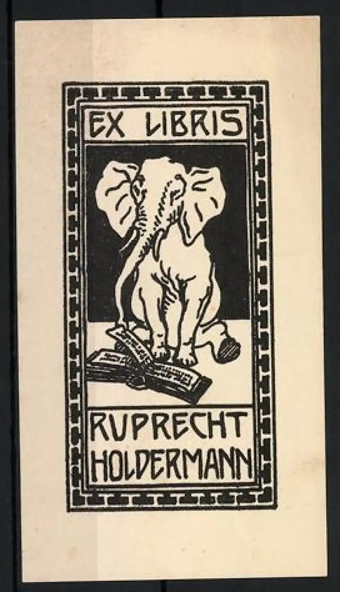 Exlibris Ruprecht Holdermann, Elefant auf Büchern