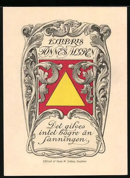 Exlibris Tönnes Algren, Wappen mit Dreieck und Ornamenten