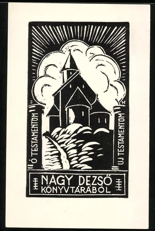 Exlibris von M. Stein für Nagy Dezsö, Kirche vor einer Wolke