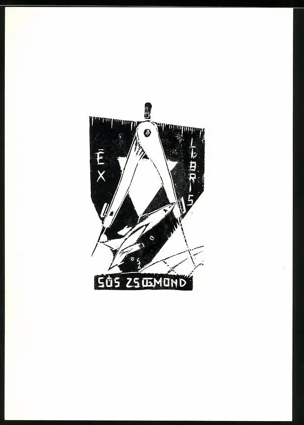 Exlibris von Zsogmond Sus für Zsogmond Sus, Zirkel & Dreieck, Freimaurersymbole