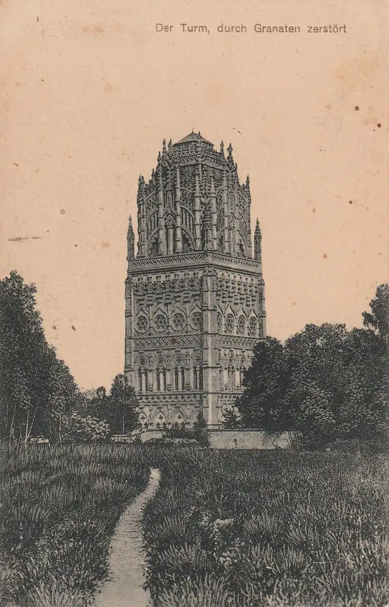 F 60138 CHIRY - OURSCAMP, 1. Weltkrieg, Zerstörter Turm des Klosters