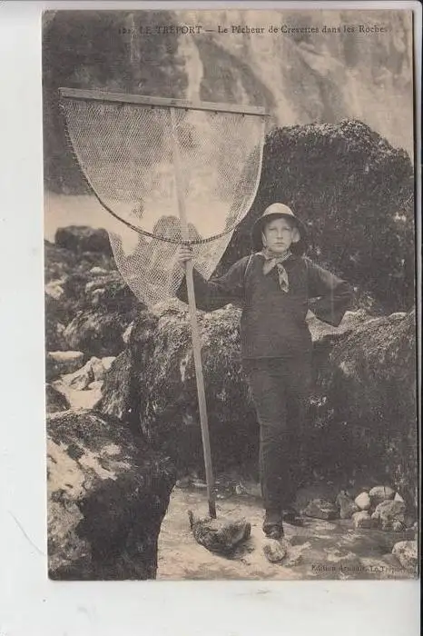 F 76470 LE TREPORT, Le Pecheur de Crevettes dans les Rocher 1916