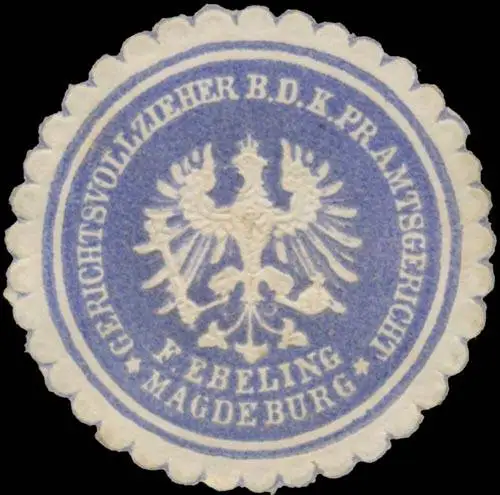 F. Ebeling Gerichtsvollzieher b.d. K.Pr. Amtsgericht Magdeburg