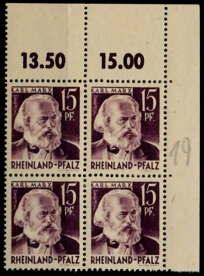 Kategorie 1: Deutschland, Besatzungszonen, Französische Zone, Rheinland-Pfalz Druckdaten/Bogenecken