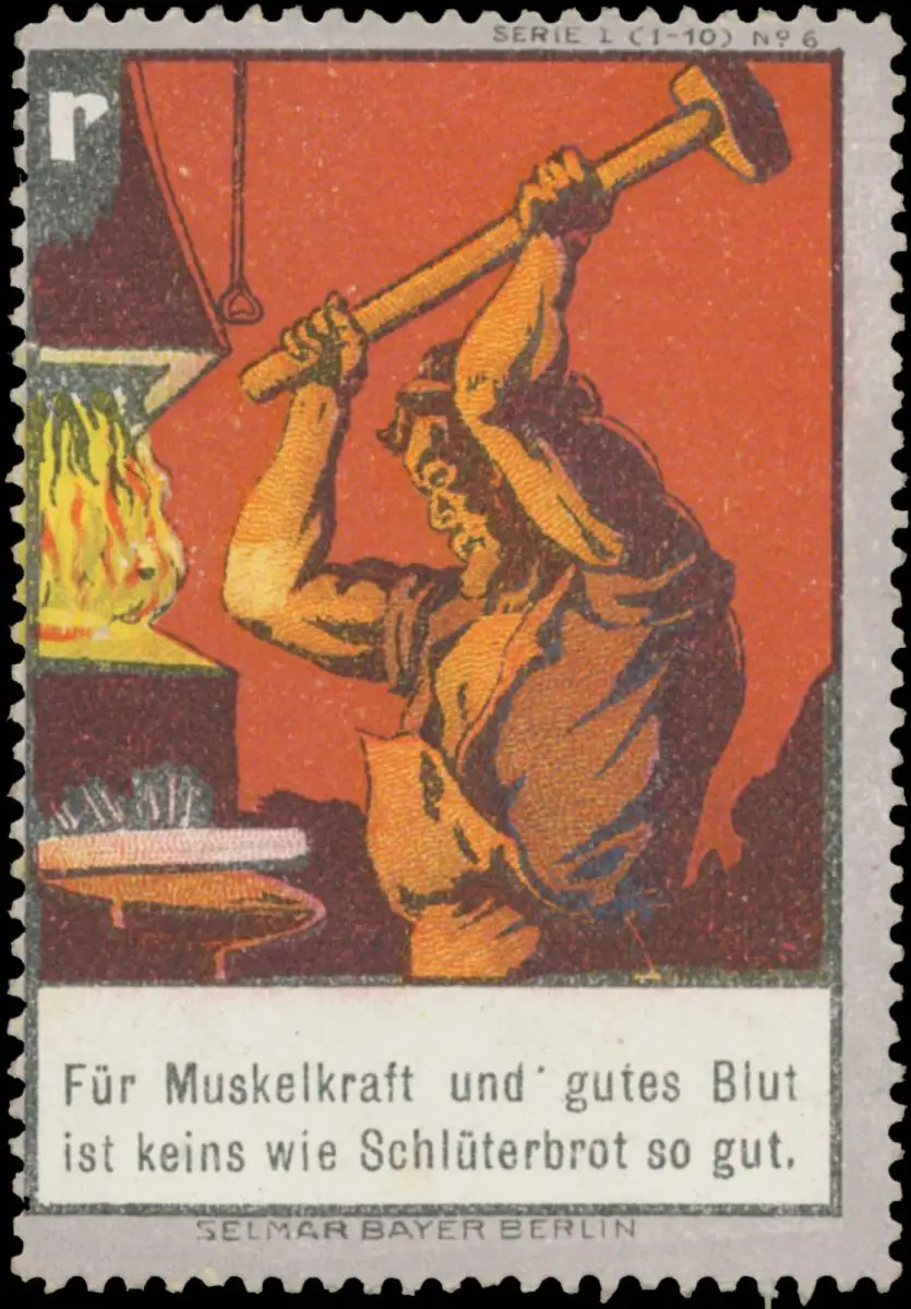 ist keins wie Schlüterbrot so gut. Serie I, Nr. 6, Buchstabensatz, Buchstabe R, Druck: Selmar Bayer, Berlin , Größe/Zustand: 6x4 , guter Zustand, Original alte Reklamemarke die seinerzeit für die Werbung benutzt wurde