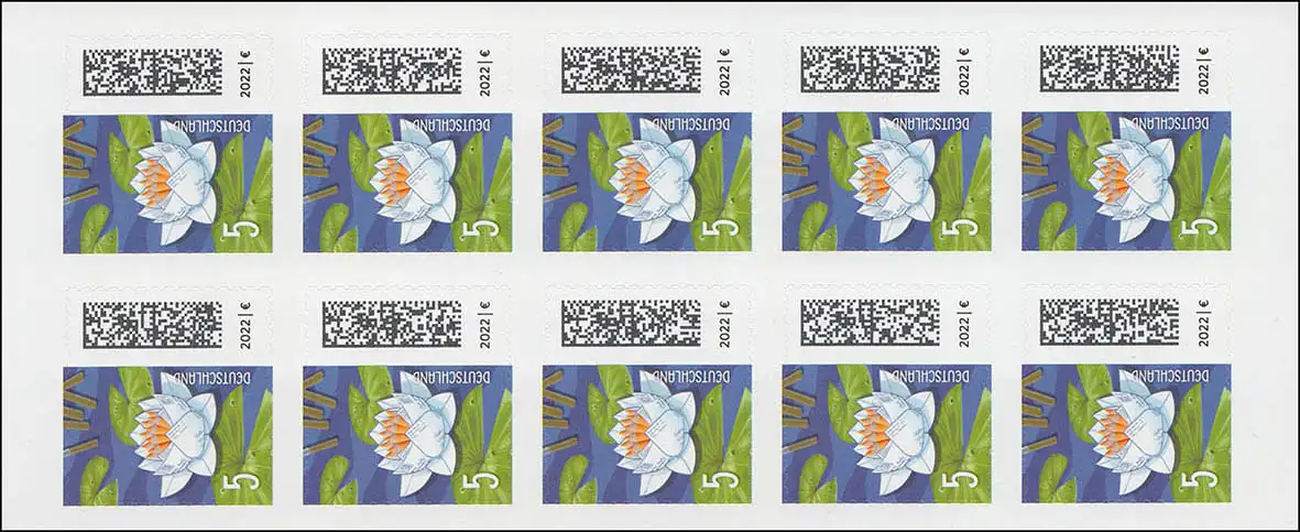 Folienblatt 10x3651, Infoseite: WEITE Zähnung bei der abgebildeten Marke, keine Rasterung im roten Schriftzug MARKEN, Markenseite: Neigung der roten Rasterung in den Farbstifte 15/75 Grad, Druckerei Enschede