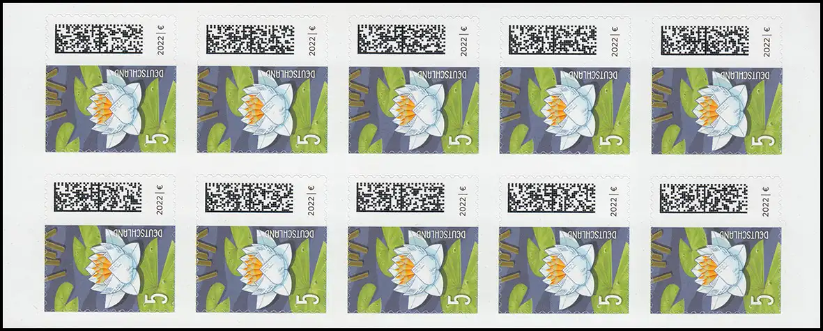 Folienblatt 10x3651, Infoseite: enge Zähnung bei der abgebildeten Marke, keine Rasterung im roten Wort MARKEN. Markenseite: Neigung der roten Rasterung in den Farbstifte 75 /15 Grad, Druckerei BSP Mönchengladbach