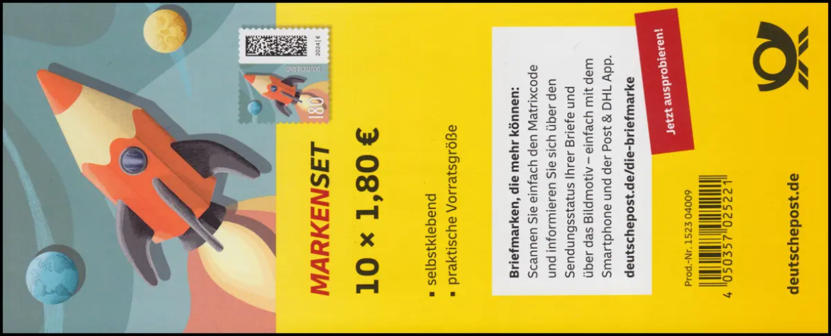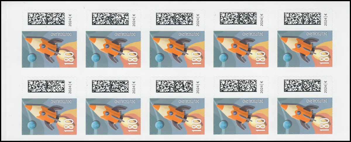 FB 143II BSP Welt der Briefe Raketenpost 180 Cent, Folienblatt 10x3874II, **