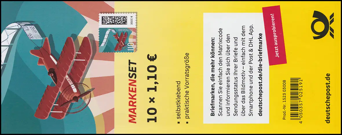 FB 144II Welt der Briefe Luftpost 110 Cent, Folienblatt 10x3883II, postfrisch **